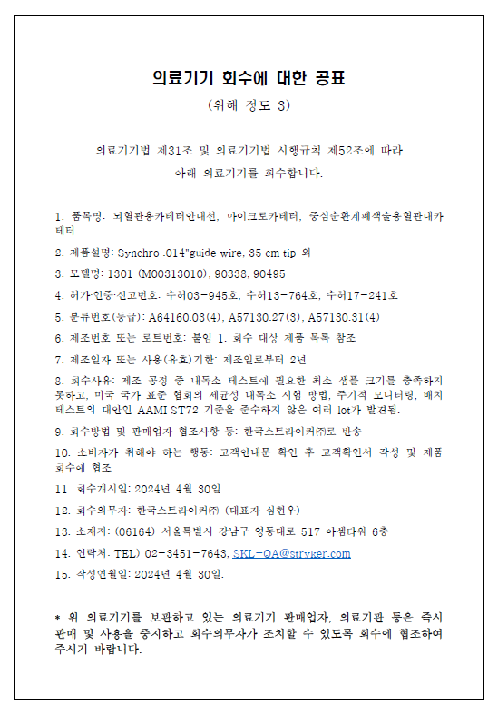 한국스트라이커 자발적회수 계획 공지